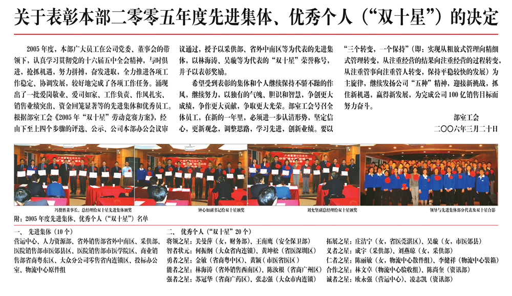 ? 广州医药股份有限公司—公司历年劳动竞赛先进集体、优秀个人 —企业文化